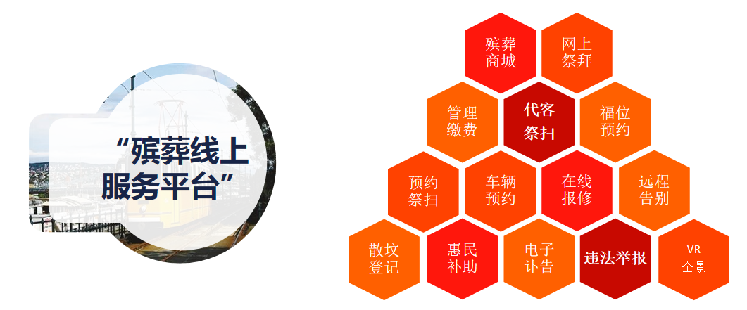 九龙殡葬线上服务平台为丧属建立快捷、便利、高效的互联网+殡葬服务平台通道。持续推出网上纪念馆、线上商城、电子讣告、网上祭扫、预约祭扫、代客祭扫、福位预约、管理缴费、在线报修、墓位导航、远程告别、灵车预约、厅堂预约、火化机预约、VR全景等多项涵盖从逝者去世到骨灰落葬的整套服务,真正做到身后一件事的便民举措,减少群众投诉,杜绝乱收费现象,规范了殡葬市场。